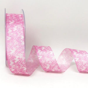 Taffeta ribbon – 25mm wide – 80328-1 – hearts on pink