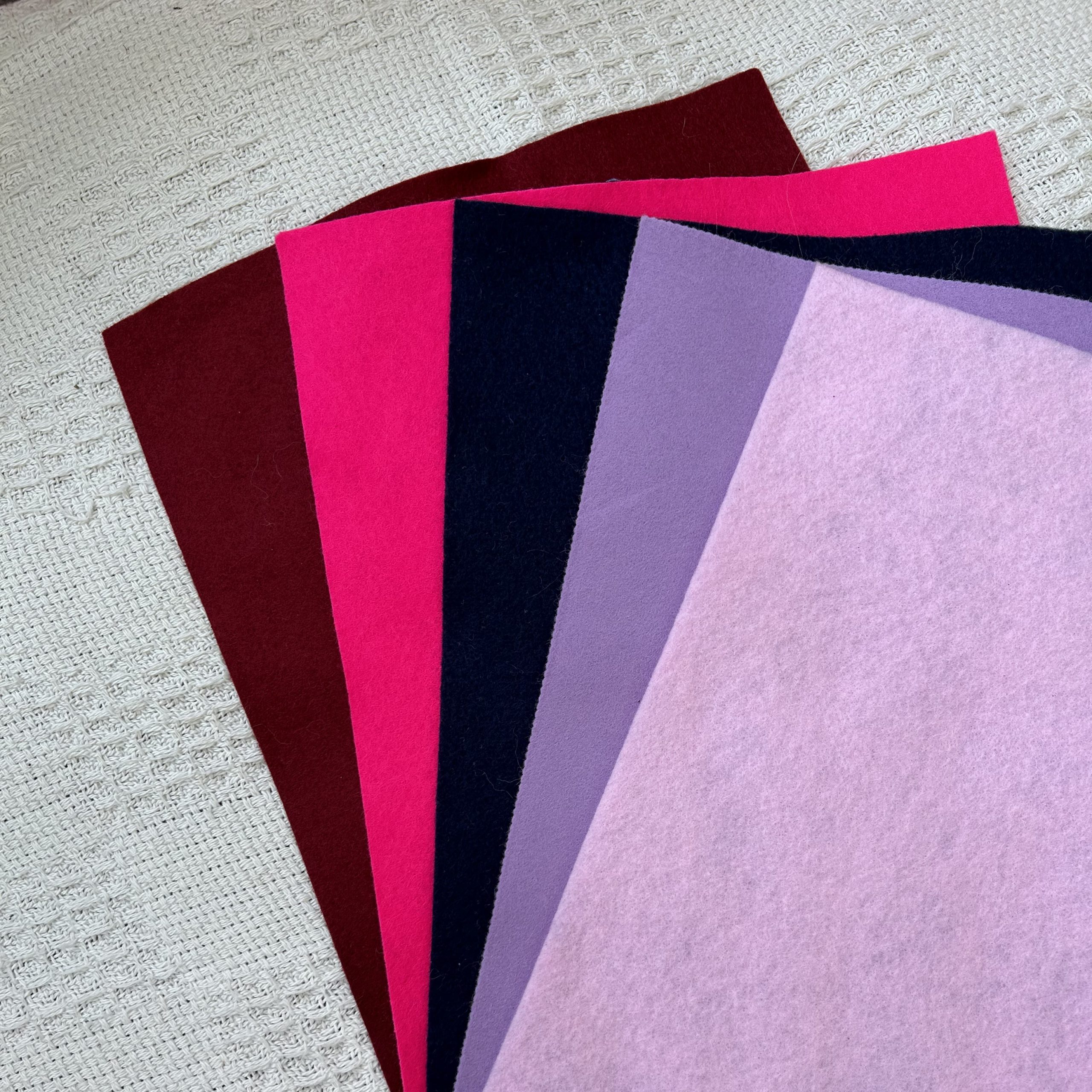Acrylic felt Sheets – 23cm x 30cm – pack of 5 – red pink purple